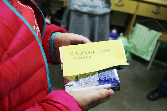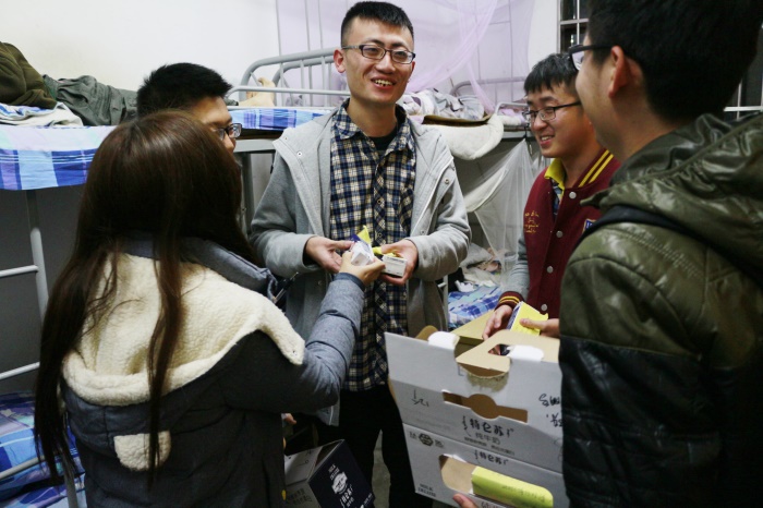 12月1日晚, 厂长资源 本科生辅导员和 厂长资源 团委学生会成员一起,进入每个宿舍,为每一位考研的同学送去冬日的温暖。
