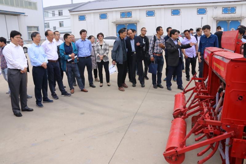 最后,参会代表观摩了基于处方图的小麦精确播种施肥一体机。中心副主任倪军教授介绍到,该机具在旋耕灭茬的同时,可基于栽培处方图实现小麦精确变量播种、施肥等作业,促进了农机农艺信息的一体化融合,提高小麦生产管理的机械化、智能化水平和作业效率。